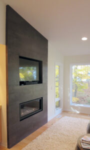 North Muskegon Residence | Iron Grey 4' x 4' NeoLith Tile Living Room Fireplace Surround