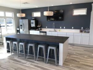 Piper Lakes Clubhouse | 12mm NeoLith Iron Moss Island & Crystal Snow White Perimeter